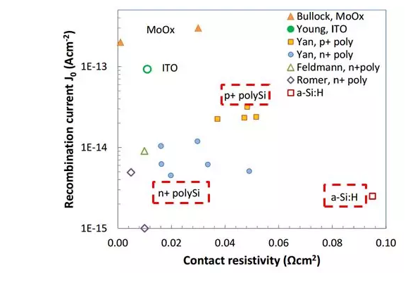 图4. n+ Poly,p+ Poly和a-Si:H三者的钝化接触性能[3]