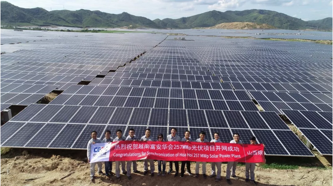 5月25日,越南富安华会257兆瓦光伏发电项目首次并网成功,正式进入商运倒计时。该项目由中国能建规划设计集团山西院总承包,总装机容量257兆瓦,全部采用上能电气1500V集装箱式逆变升压一体化解决方案,顺利实现从设计、施工到并网验收。