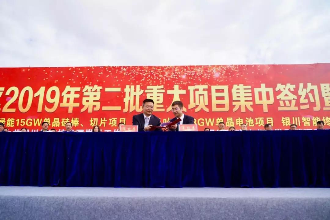 5月18日,隆基股份银川15GW单晶硅棒硅片项目开工仪式在银川经开区隆重举行。在开工仪式上,隆基乐叶与北京能源集团(以下简称“京能集团”)签署了战略合作协议,隆基乐叶光伏科技有限公司总裁李文学、京能集团副总经理王永亮作为双方代表参与签约,宁夏自治区党委副书记、银川市委书记姜志刚,自治区人民政府副主席杨东,银川市委常委、副市长李鸿儒,银川市委常委、副市长赵刚等当地政府领导在现场共同见证了双方战略合作协议的签订。