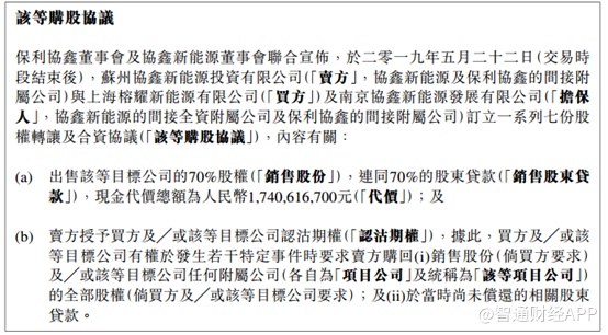 主要内容为苏州协鑫作为卖方,出售目标公司70%已发行股本,及70%股东贷款结余,代价分别为16.07亿及1.33亿元,合计17.40亿元。此后,买方还将根据出售项目是否已纳入国家补贴目录支付各项目公司应付股息合计3.22亿元。
