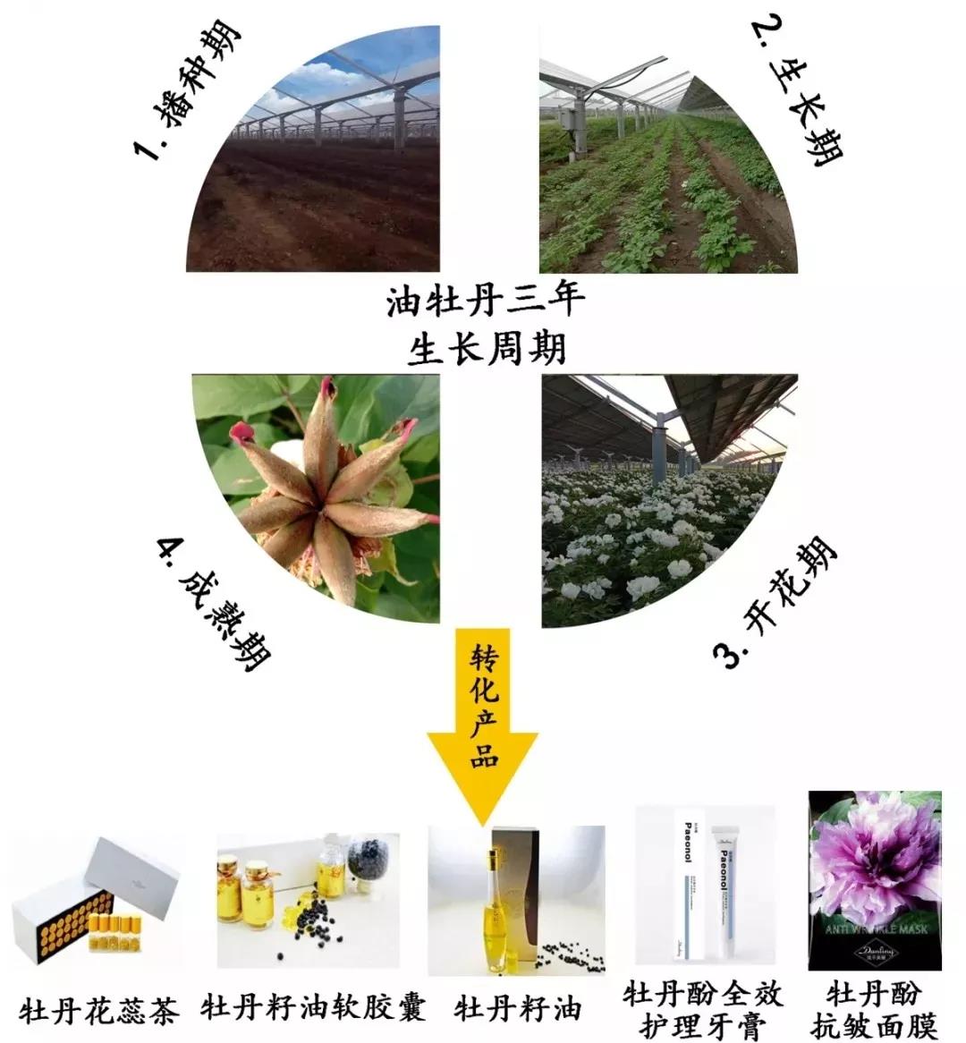 因此,种植油用牡丹要比种植传统农作物每亩地多收入1000多元。牡丹产业在巩固发展观赏牡丹和药用牡丹的基础上,“光伏+油用牡丹”的发展已是大方向、大趋势。