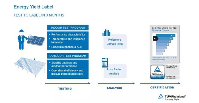 “发电量评级标签”不仅能为不同组件在特定气候条件下的户外发电性能提供对比依据,更能为投资方及买家为特定气候选择合适的光伏组件提供指导。