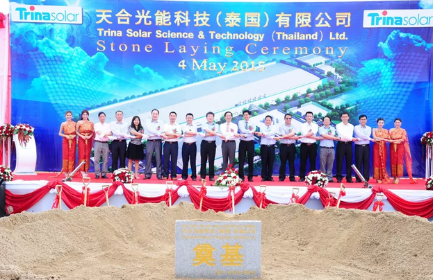2015年5月4日,天合光能泰国工厂在泰中罗勇工业园正式奠基开工。