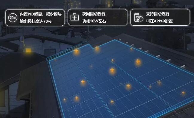 PID修复延长组件寿命:逆变器内置防PID模块可自动在PV-与PE之间施加调节电压,将串电压抬升至地,修复组件PID效应,让组件长期保持在健康状态。