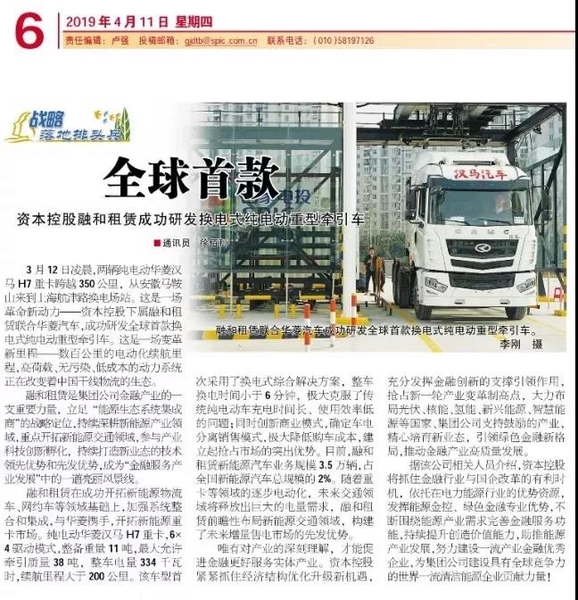 △《国家电投报》报道“全球首款换电重卡”