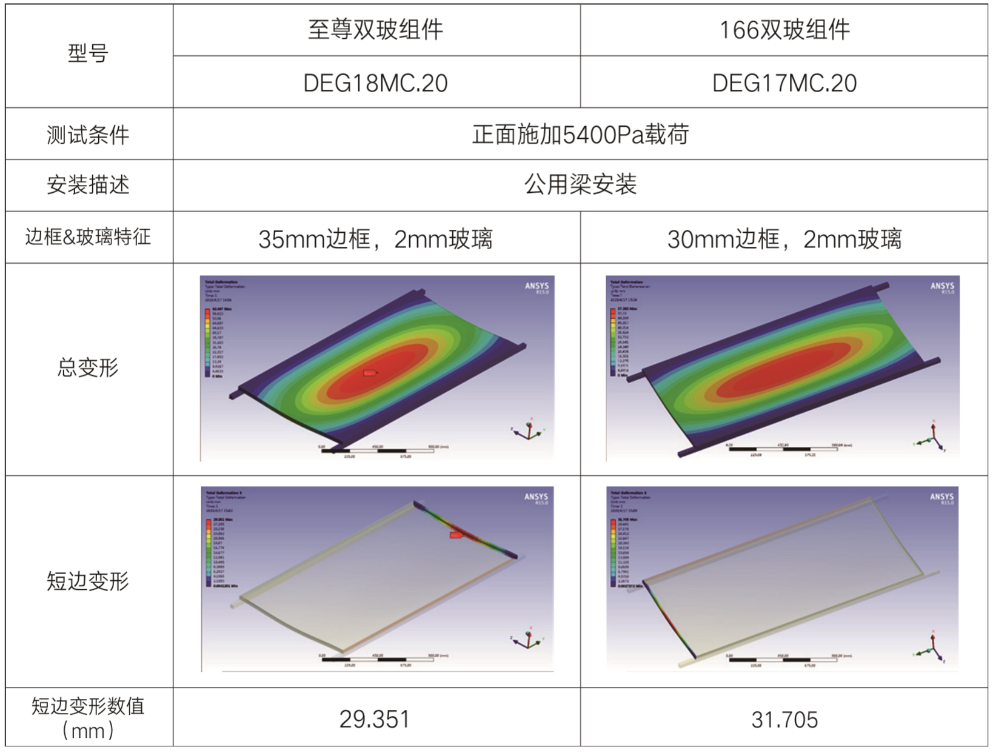 图2至尊双玻组件与166双玻组件的机械载荷性能有限元分析