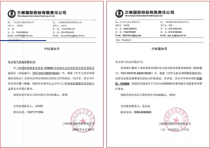 4月26日,东方电气风电有限公司陆上、海上市场分别传回捷报:东方风电中标三峡福建漳浦六鳌海上风电场D区第二标段100MW风电项目;中标三峡新能源康保老章盖第一标段100MW风电项目。