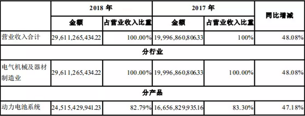 据其年报显示,2018年,宁德时代总营收达到296.11亿元,同比增长48.08%;净利润则下降12.66%,但也有33.87亿元。