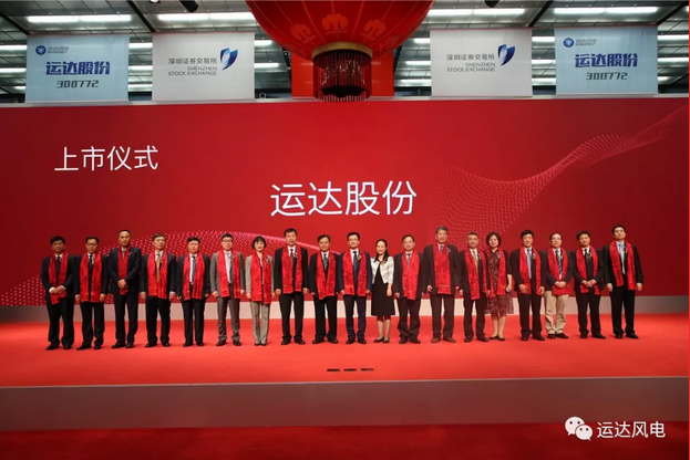 2019年4月26日,浙江运达风电股份有限公司(股票简称:运达股份,股票代码300772)首次公开发行A股上市仪式在深圳证券交易所隆重举行。