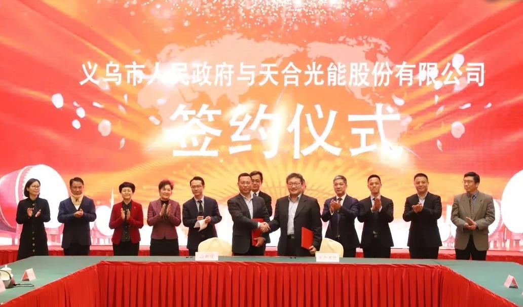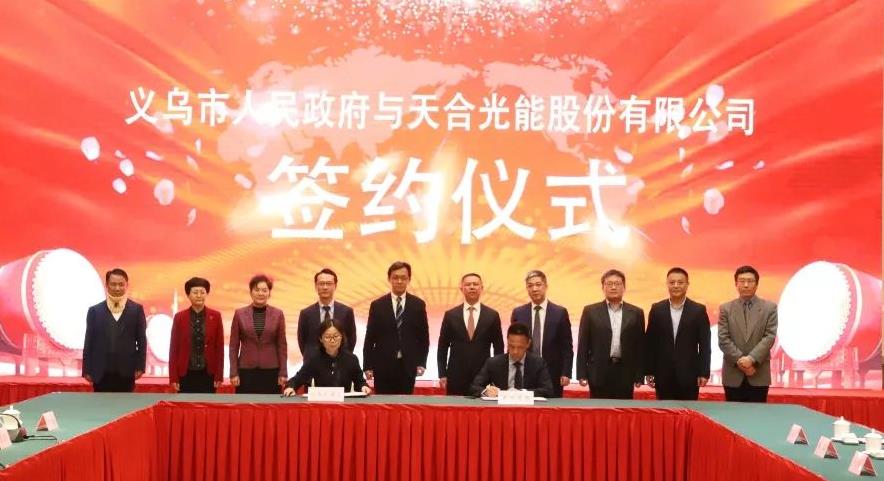 4月16日,天合光能股份有限公司(以下简称“天合光能”)与义乌市人民政府、义乌信息光电高新技术产业园区(以下简称“义乌信息光电高新区”)管理委员会在义乌举行签约仪式。天合光能将在义乌信息光电高新区建设高效太阳能电池组件生产基地,致力于打造在国际上具有重要影响力、技术先进、产品高端的太阳能电池组件生产、制造、销售基地。天合光能董事长兼首席执行官高纪凡和金华市委常委、义乌市委书记林毅出席签约仪式并讲话。
