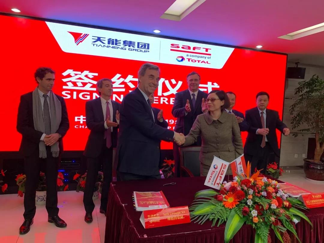 道达尔集团的子公司帅福得(Saft)与天能集团旗下的子公司天能能源科技股份有限公司签署了一项协议,成立合资公司以扩大其锂离子业务。生产基地位于浙江长兴,工厂的潜在产能为5.5千兆瓦时(GWh)。帅福得将拥有新合资公司40%的股份,天能能源科技股份有限公司将持有剩余股份。