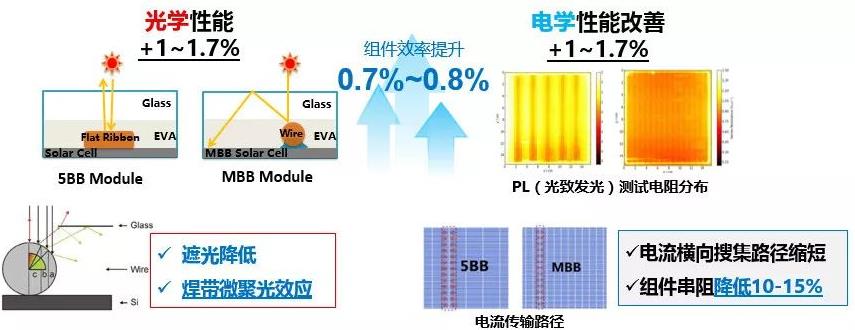 光伏平价时代的电站系统对光伏组件提出了三大主要要求:高功率、高可靠、低成本,而MBB技术在这三大因素上都有突破,具备产业化发展的前提。