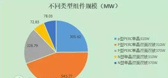 以国家电投组件选型为例,按照领跑者项目竞标阶段满分组件的技术参数,国家电投领跑者项目组件招标清一色单晶系列,包含P型和N型。其中,备受关注的双面双玻组件容量达923.42MW,占比75%。