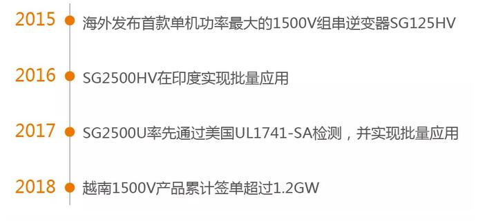 相较于国内,国外如欧洲、北美、印度等光伏市场,在1500V技术研究及市场应用上更加成熟。阳光电源积极实施“走出去”战略,针对不同国家和地区市场准入标准,分别开展针对性的技术创新和研发活动,不断推出符合市场准入要求的高性能产品和服务。目前阳光电源“1500V+大方阵+高超配”先进系统解决方案,应用足迹已遍布欧洲、美国、印度、越南等多个市场,成为全球光伏市场降本增效的首选。