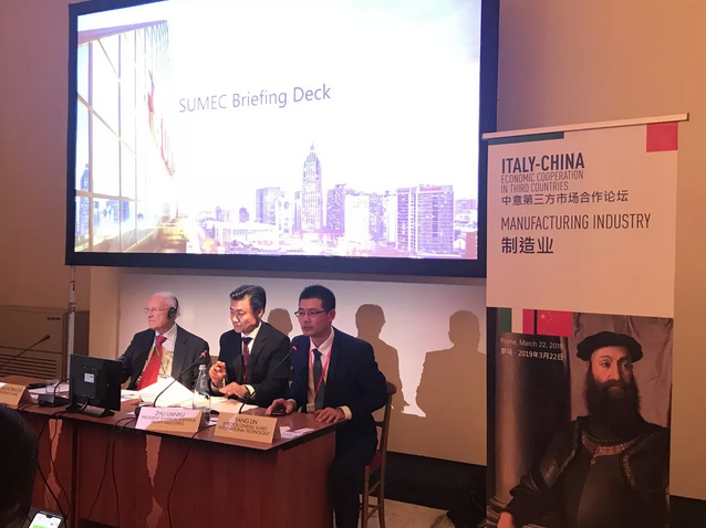 苏美达技术公司团队作为46家中方企业代表之一,参加了由意大利副总理兼经济发展部部长迪马约先生和国家发改委副秘书长任志武先生共同主持的首届中意第三方市场合作论坛,并作为制造业平行论坛的7家中方大型企业代表发言,意大利机械制造协会主席、分支协会、意大利方制造型企业代表、金融机构代表等嘉宾出席论坛。