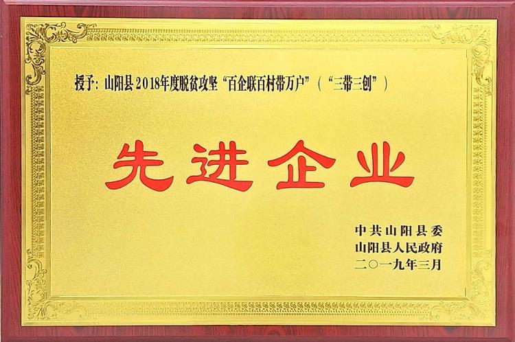 2019年3月18日,在陕西省山阳县脱贫攻坚会上,当地县政府授予中利集团“三带三创先进企业”荣誉,表彰公司在过去两年帮助当地129个村9159个贫困户实现精准脱贫所作出的贡献,为当地的扶贫工作打开了新大门。