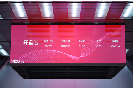 2019年3月19日,宁波锦浪新能源科技股份有限公司上市挂牌仪式在深圳交证券易所举行,股票简称“锦浪科技”,股票代码“300763”,保荐机构和主承销商为海通证券股份有限公司。本次发行股票数量2,000万股,发行价格26.64元/股,新股募集资金总额53,280.00万元。
