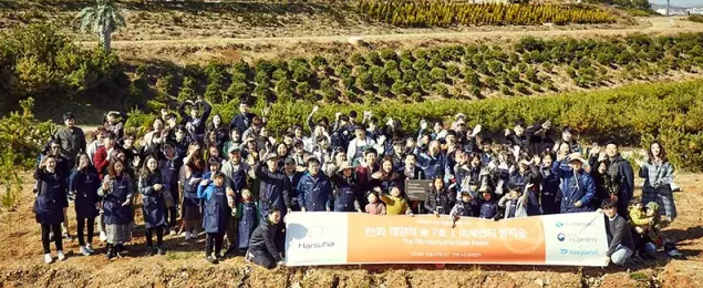2016年5月,韩华集团在韩国瑞山播下了1,700多颗种子,成功创造了第五座太阳能森林。