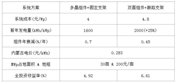 下表按“双面+跟踪”25%的发电增益对该地区平价上网项目收益率做简单测算,在系统成本控制在4.8元时,按内蒙0.283元/度的脱硫煤电价可获得6.61%的全投资收益率,初步具有投资价值,如果是临近电价较高的晋北与陕北地区则会具有更好的收益。P型单晶PERC双面组件的发电增益稳定性已经过时间验证,经历第三期领跑者的大规模应用,预计将在平价上网等地面电站项目中成为投资者的主流选择。