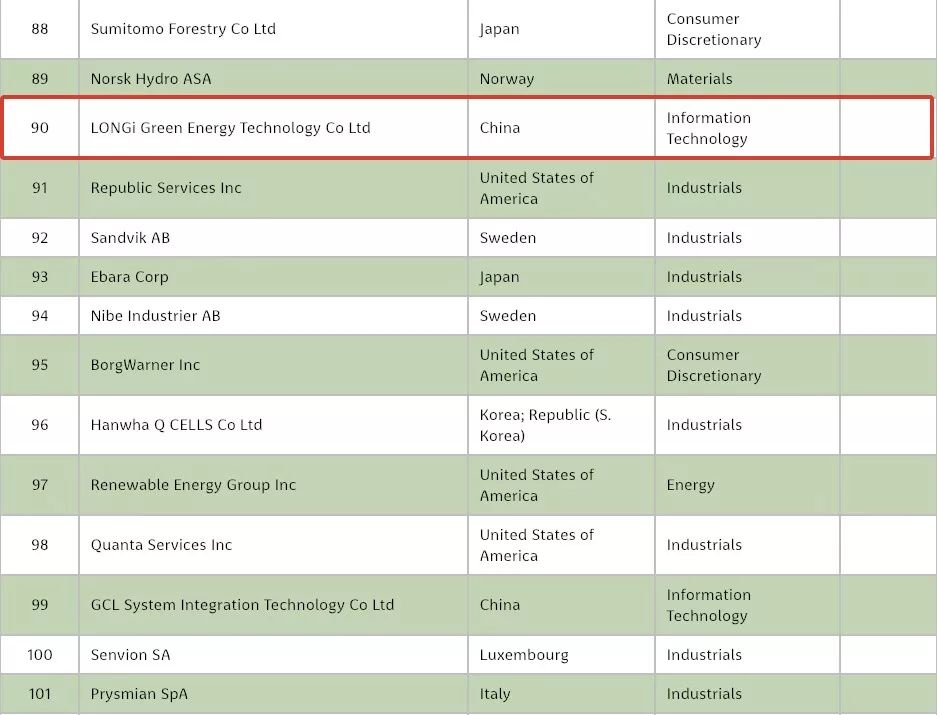 2月19日,美国非营利组织As You Sow与加拿大市场调研公司 Corporate Knights公布了碳清洁200指数(Carbon Clean200)的最新数据,对全球最清洁的200家上市公司的排名情况进行了调整。隆基股份入选全球最清洁企业200强榜单,名列全球第90位,中国第7位。