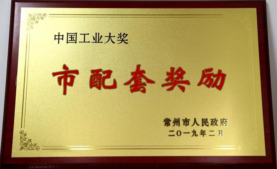 常州市委市政府为获得中国工业大奖企业奖和提名奖项目企业给予配套奖励,奖励金额由市工信部门按照规定布置落实。