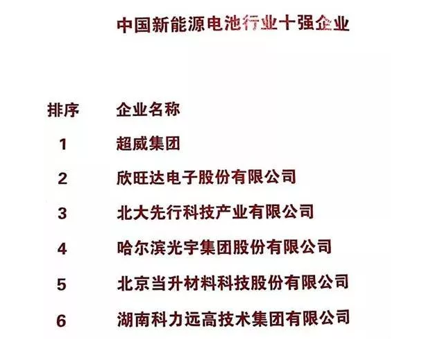 6月20日,中国轻工业百强企业高峰论坛在北京举行,大会发布了“2017年度中国轻工业百强企业”等荣誉榜单,超威集团连续6年上榜中国轻工百强,并同时拿下中国新能源电池行业十强企业第一位、研发能力能榜电池行业第一位。