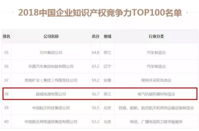 “中国企业知识产权竞争力TOP100”发布!超威与阿里巴巴、华为、海尔跻身榜单前50强!