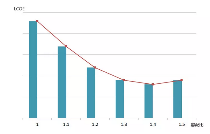 光伏电站中组件标称功率与逆变器额定输出功率的比例称为容配比。过去,由于组件成本较高,占到系统投资成本的一半左右,电站大多按照1:1的容配比进行设计。随着组件成本快速下降,电站设计也调整为最低度电成本(LCOE)原则。仿真计算发现,在合理范围内提高容配比,光伏电站的LCOE将会大幅降低。