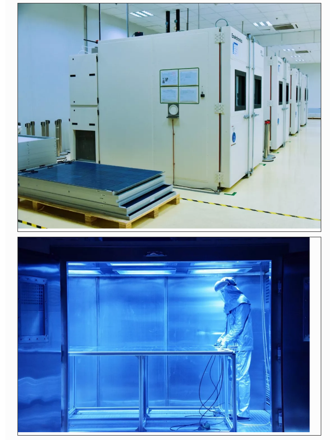 隆基高效单晶组件在产品质量上精益求精,每一块组件在推出之前都需要经过严格、反复的性能及可靠性测试,确保测量的一致性以及产品在实际应用中具备高效、可靠性能。隆基泰州基地组件实验室主要承担组件及其辅助材料的可靠性测试以及研发阶段的各项测试,在隆基组件产品的开发检测、产品鉴定认证等环节中做出了重要贡献。