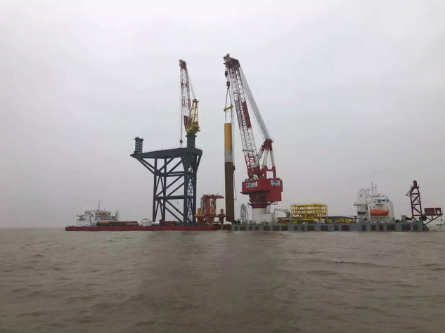 1月13日,中天科技集团海洋工程有限公司风电施工船“中天9”在华能江苏大丰海上风电项目现场完成首根基础桩施工,成为中天科技进军海上风电施工领域打下的第一根桩!