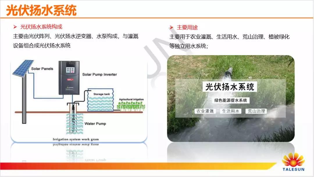 近几年,随着光伏产业的迅速发展,成本逐年下跌,尤其在今年政策调整下,价格已趋于平价上网,光伏产品将成为人们生活中常见的日常品。其中,光伏扬水系统是光伏产品与扬水相结合,创新应用到生活用水,农业灌溉、生态恢复、草原畜牧等需求中,光伏扬水系统作为光伏领域的拓展应用,不仅可以避免电网基础设施建设的大量资金投入,而且解决了农业生产、生活等缺电缺水难题。