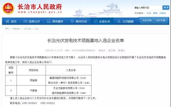 天合光能中标山西省长治市平顺县250MW和陕西省铜川市许庄村-尧生村-八丈塬村场址250MW光伏发电技术领跑者基地项目。