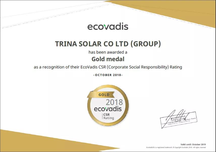 天合光能企业社会责任表现位列全球电子元件制造行业板块排名前3%,被授予“企业社会责任成就金奖”。