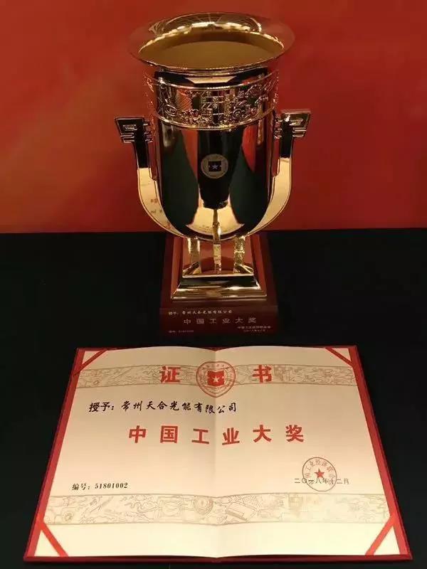 12月9日,天合光能荣获中国工业大奖企业奖,成为目前首个获此殊荣的光伏领域企业。