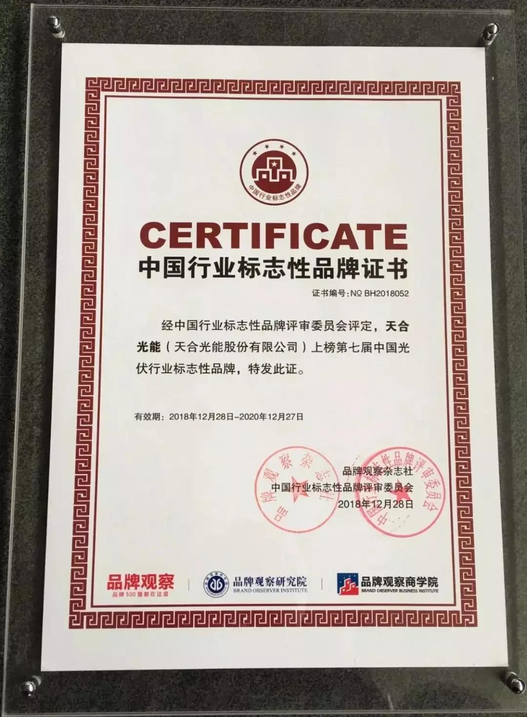 12月28日,天合光能荣获“中国光伏行业标志性品牌”奖,与华为、格力、海尔、阿里巴巴等各行业的标志性品牌一道,彰显中国品牌风采。