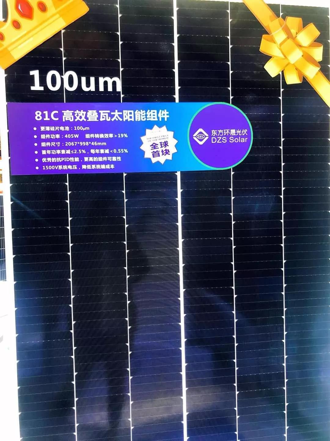2018国际太阳能产业及光伏工程展览会暨论坛(SNEC光伏展)于5月28-30日在上海新国际博览中心盛大开幕。全球首块100um厚度硅片405W高效叠瓦组件首次展出。