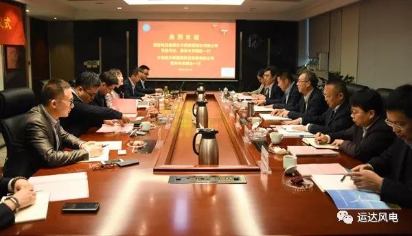 2018年12月20日下午,国家电投集团东方新能源股份有限公司党委书记、董事长李固旺一行及甘肃航天新能源投资集团有限公司董事长张鹏全一行莅临运达公司杭州总部参观交流。浙江省机电集团有限公司副总经理兼运达风电党委书记、董事长杨震宇,运达风电党委副书记、总经理高玲,营销中心总经理程晨光,工程运维中心总经理陈坚钢等参加座谈。