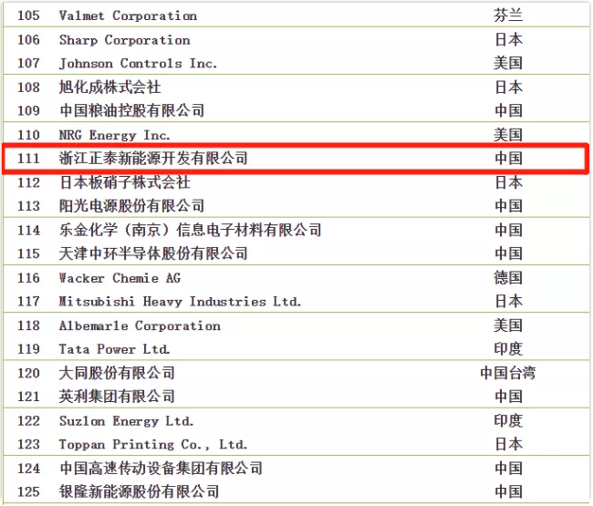 2018全球新能源企业500强榜单