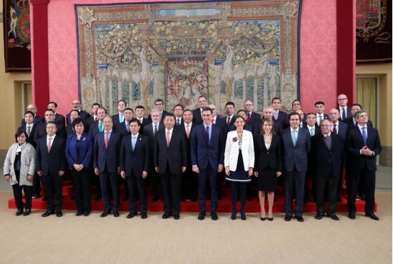 同西班牙首相桑切斯共同会见中西企业顾问委员会双方代表。