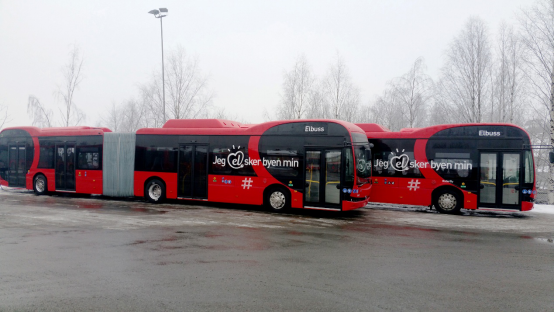 在挪威奥斯陆运营的比亚迪18米纯电动铰接巴士