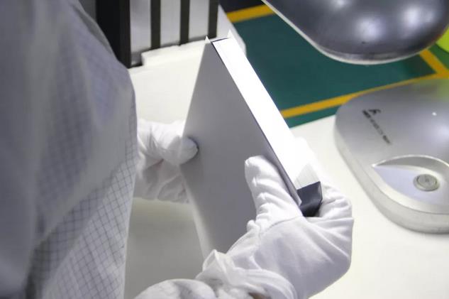 穿着像应对生化危机一样的衣服,任何一个有可能暴露的部位都小心遮挡起来,鞋子、手套、帽子和身体的连接部位都用拉锁拉好,工作人员说人体皮屑对产品质量都有影响。即使在这样超清洁环境中,检测部分仍然要小心用特殊材料和其他部分分开,以保证真正“一尘不染”。