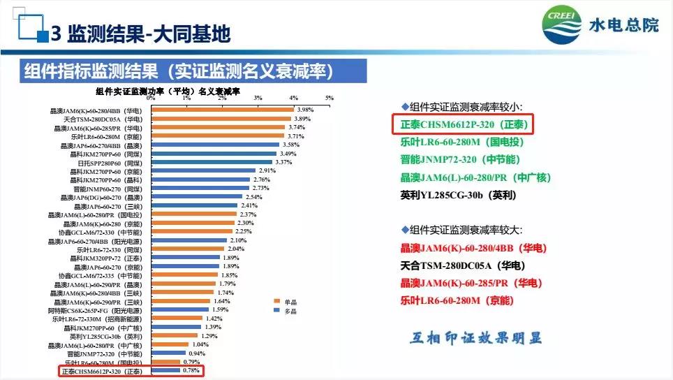 此外,国家可再生能源管理中心在论坛上分享了《光伏领跑者实证基地建设以及运营监测结果分析》,大同领跑者基地组件最新监测结果显示正泰AstroHalo系列组件衰减率仅为0.78%,成绩名列第一。
