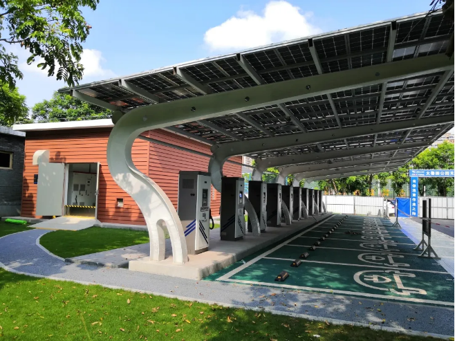 在松山湖太鲁阁公园内,一座融合了5G基站、充电桩、边缘计算、物联网等黑科技的光储充一体化充电站伫立其中,10台直流快速充电桩有效提高了充电效率。这个荣获广东电网样板金质工程的项目,能够将光伏发电转换应用于电动汽车充电和削峰填谷等,实现能源生产与消费基本平衡,达到最优的光伏储能发电效益和最佳的节能减排效果,满足了松山湖居民绿色出行需要。