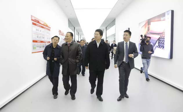 刘汉元主席陪同曹俊杰副市长一行参观通威太阳能三期项目生产车间