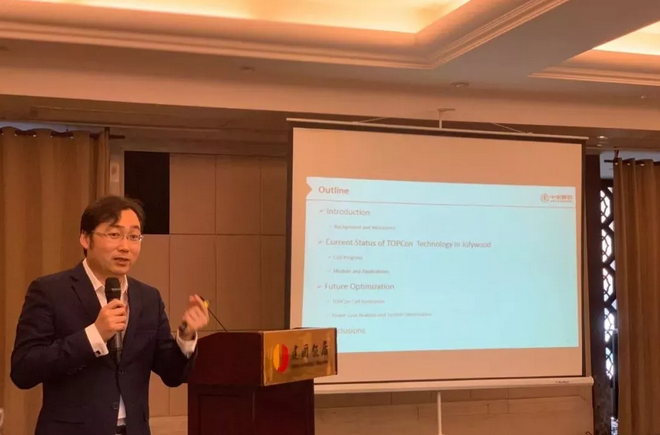 此次论坛中,中来作为N型技术的引领探讨者,同与会嘉宾们分享了两个报告主题,分别为“N型TOPCon单晶电池技术及应用”及“透明网格背板-双面组件的最佳封装材料”。