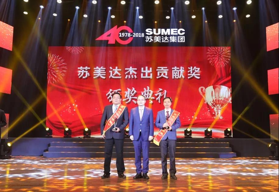 在随后的颁奖环节,杨永清董事长、苏美达集团总经理蔡济波为苏美达40周年杰出贡献奖、突出贡献奖获得者颁布了奖状。奉献不言苦,追求无止境,40年来,正是一代代优秀苏美达人,在岗位上攻坚克难、一往无前,推动苏美达不断攀上新的高峰。