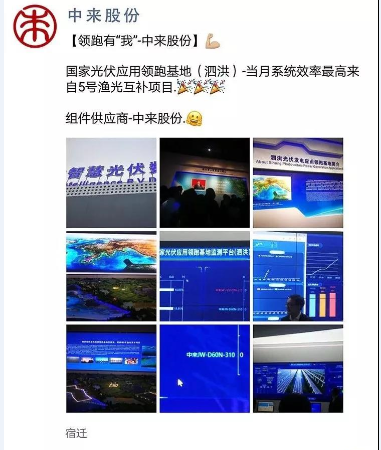 另外一个可喜的是,在并网之后,就在此次泗洪举办的中国光伏产业领跑论坛光伏参观环节(泗洪光伏数据监察)中,国家光伏应用领跑基地(泗洪)——当月系统效率最高来自天岗湖、香套湖5号渔光互补项目。在恭喜国家电投的同时,也欣慰中来的产品(光伏组件)再一次得到了市场的检验与认可。