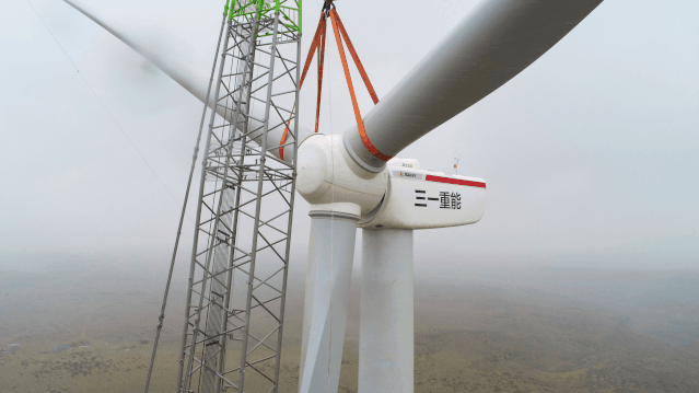 三一重能助力全球最大清洁能源基地首台风机吊装成功!