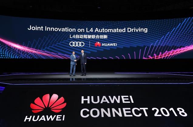 今日,在HUAWEI CONNECT 2018期间,华为与德国汽车制造公司奥迪正式宣布了双方在智能网联汽车领域的下一步合作计划,并通过最新的奥迪Q7展示了双方领先的技术。