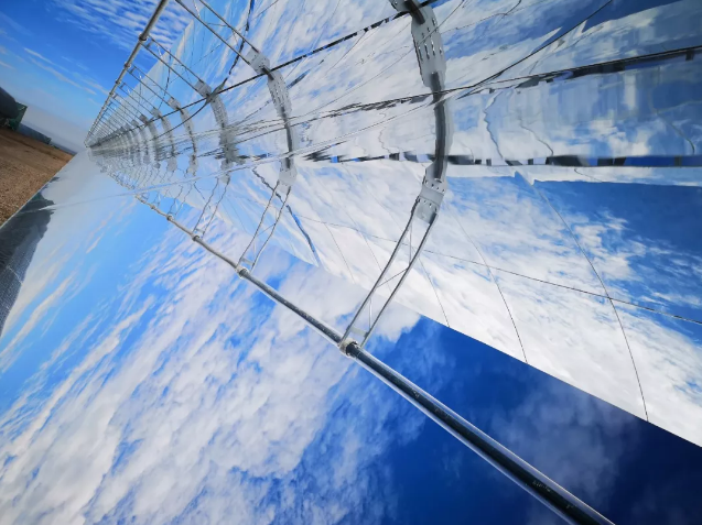 据悉,德令哈项目的太阳岛集热器由25万片共62万平方米的反光镜、11万米长的真空集热管、跟踪驱动装置等组成,场面浩大、蔚为壮观。它们就像向日葵一样,可以跟踪太阳的转动,把热量源源不断地收集起来。